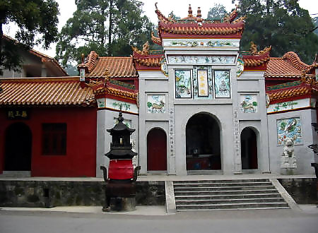 在岳麓山半腰,系晉初古寺,是佛教人湘最早的一所大寺。明神宗時(shí) 更名為萬(wàn)壽寺,民國(guó)初年復(fù)名,古麓山專(zhuān)。唐代大詩(shī)人杜甫曾用“寺門(mén)高開(kāi) 洞庭野,殿腳插入赤沙湖”的詩(shī)句稱頌殿字宏大。大雄寶殿等主要建筑,于 1944年被炸毀,僅存山門(mén)和觀音閣,現(xiàn)已修整一新.山門(mén)上有“古麓出寺” 的橫額,兩旁為“漢魏最初名勝,湖湘第一道場(chǎng)"對(duì)聯(lián),門(mén)外古楓參天,濃 蔭覆蓋,門(mén)內(nèi)園圃百花爭(zhēng)艷。觀音閣為磚木結(jié)構(gòu),1955年曾加以修葺,1980 年再次修整恢復(fù)原貌,并在廳堂神龕中置觀音像。閻內(nèi)常舉辦小型書(shū)畫(huà)展 覽。觀音閣前有兩株羅漢松,左邊一株是六朝遺跡,稱“六朝松",樹(shù) 齡在1700年以上, 是岳麓山植物界的"元老", 老干新枝,紛繁翁 郁,彌足珍貴;右邊一株于清代被巨風(fēng)拔去并被清代人補(bǔ)植。兩棵古松 并峙于閣前,游人樹(shù)下經(jīng)過(guò),若入關(guān)隘,故有“關(guān)松"之稱。