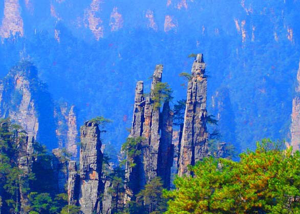 下 午: 漫步游覽“中國最美麗的大峽谷”——【金鞭溪】:金鞭溪是天然形成的美麗溪流,因金鞭巖而得名,溪谷植被繁茂,溪水四季清澈,被稱為“山水畫廊”、“人間仙境”。全長7.5公里,步行約2.5小時(shí)。沿途游覽金鞭巖、神鷹護(hù)鞭、劈山救母、醉羅漢、文星巖、紫草潭、千里相會(huì)、水繞四門、觀音送子、師徒取經(jīng)、長壽泉、蠟燭峰、雙龜探溪、秀才藏書等著名景點(diǎn);乘環(huán)保車至武陵源門票站。
