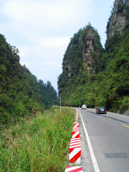 百丈峽圖片 百丈峽是武陵源風景名勝區(qū)通往張家界市的公路貫通整個峽谷,因有堵高近百丈的石壁,直插云霄,不敢仰視,故而得名。據《慈利縣志》載,索溪峪右得百丈峽,峽長三十公里……又相傳向王天子起義軍與官兵在此先后博殺一百仗,依此又名百仗峽。明代九永兵備胡桂芳,一生好游歷山川,來到百丈峽后題寫了一首七言詩:“峽高百丈洞云深,要識桃源此處尋;戎旅徐行風雪緊,誰將興盡類山蔭。”刻于峽內道旁石壁上。