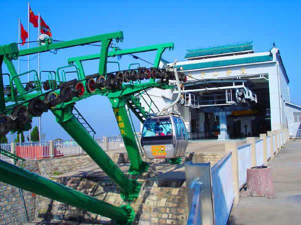 湖南武陵源索道有限公司成立于1995年12月7日,武陵源區(qū)人民政府和香港安達(dá)國際度假樂園(張家界)有限公司簽約,是由香港安達(dá)國際有限公司投資的外商獨資企業(yè)。1996年6月動工興建天子山索道,1997年5月正式對外營運。天子山索道是單線循環(huán)式脫掛抱索器客運索道,全部設(shè)備自奧地利Doppelmayr公司進(jìn)口。設(shè)計水平線1960m,斜線長2084m,兩端站高差692m。配單線自動循環(huán)車廂41個,每車廂載6人,運速5m/s,每小時單向運量900人。索道動力電,采用雙電源;配備有應(yīng)急備用柴油機(jī),用于停電或發(fā)生設(shè)備事故時緊急疏散游客。
