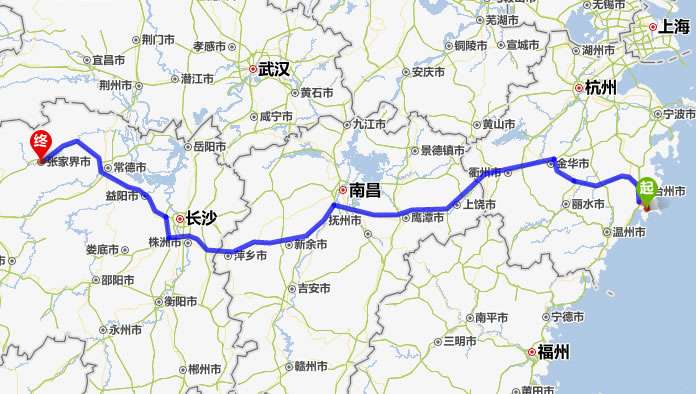 溫嶺去張家界自駕車自助游線路圖全程高速):