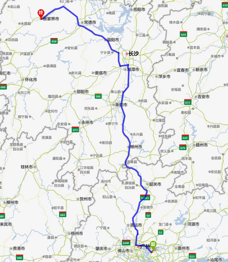 麗水去張家界自駕車自助游線路圖全程高速):