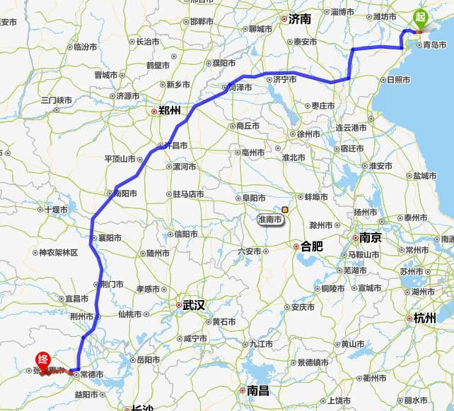 左右,沿途經過即墨——高密市——諸城市——沂水縣——沂南縣——平邑縣——濟寧市——荷澤市——開封市——許昌——平頂山——南陽——襄陽——荊門——荊州——常德(也可以走國道經澧縣、石門縣)——慈利——張家界。