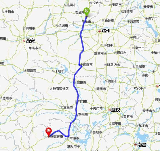 晉城去張家界自駕車自助游線路圖全程高速):