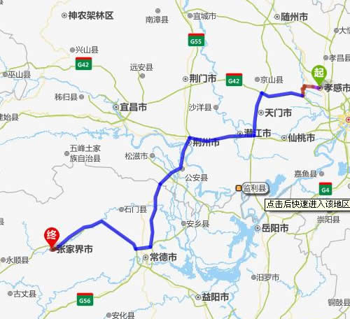 現(xiàn)在位置:張家界旅行社->交通指南->自駕車路線 -> 孝感到張家界旅游自駕車線路-孝感去張家界自己開(kāi)車要多長(zhǎng)時(shí)間,有多少公里